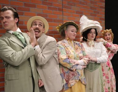 Russin’s ensemble is comprised of semi-stock characters who predictably clash. There’s Christina, the second wife of gynecologist Barry (a duly patriarchal Chip Bolcik). She’s over compensating and feverishly obsessing over the minute details of the Passover dinner. Their son Mose (Aidan Blain) is convincing as the typical insolent teenaged boy tossing around smart-ass wisecracks. He’s mostly bemused by his Mom’s “hard core” embrace of the faith and taunts his sister with an incriminating photo he has on his cell phone. Rachel (Julia Arian) is Christina’s hostile older stepdaughter, vociferously rebelling against everyone and everything. The kids’ cheerfully obstreperous and profane grandfather Sol (Paul Zegler) is dying of cancer and so has turned to smoking pot for relief, much to his son Barry’s dismay. Representing the outsider (or non-Jewish) dinner guest is Patrick (Tom Berklund), a colleague of Barry, who stands in for those of us in the audience who might be unfamiliar with this hallowed Jewish tradition.