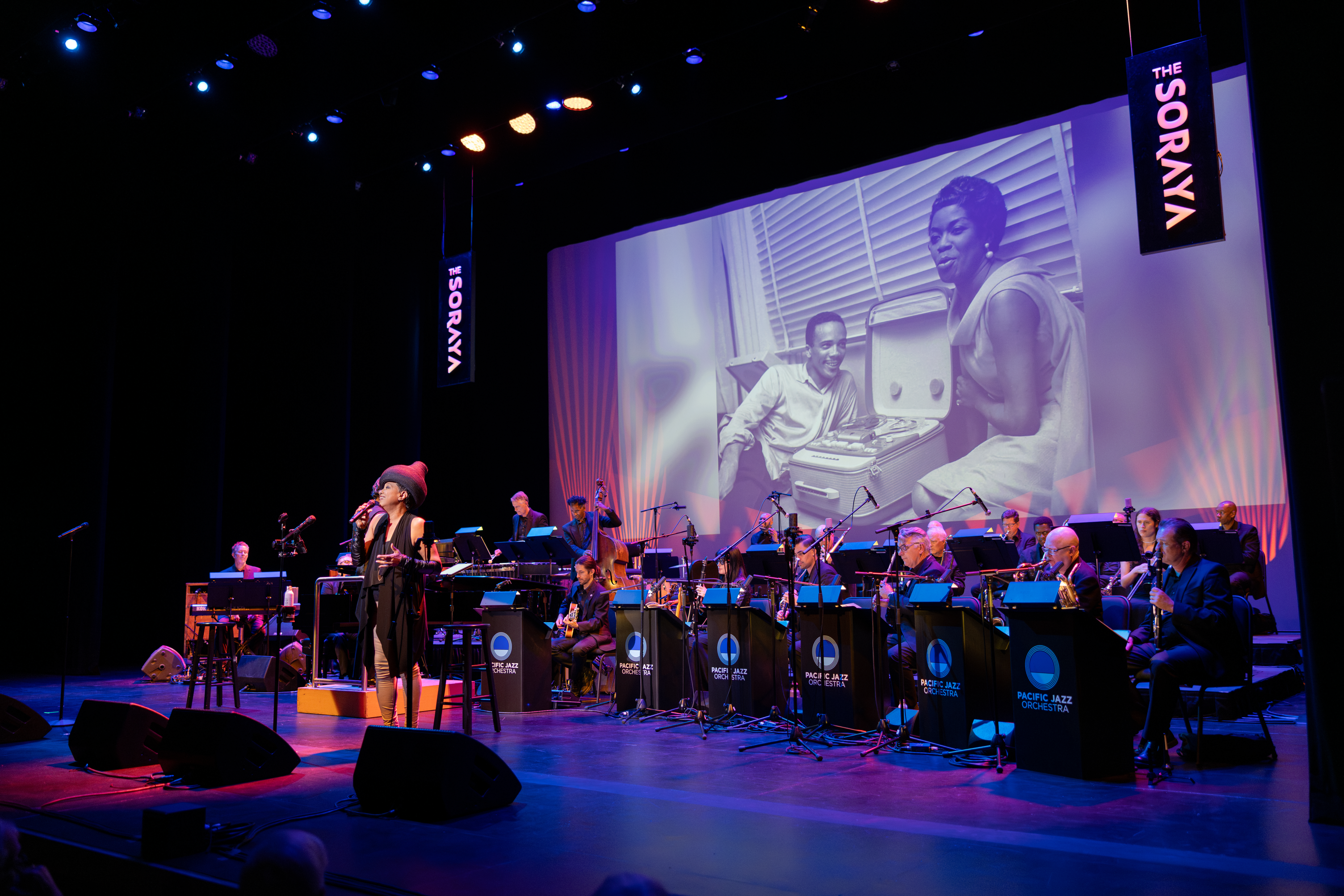 The one-off concert was a Soraya Original Production and one of five 15th anniversary events. Joining the Pacific Jazz Orchestra were vocalists José James and Lisa Fischer, and this concert marked Fischer’s third performance at The Soraya – recognized as a one of LA’s primary jazz venues. The superlative stylings of Fischer and James added vocal depth and polish to what could easily have been a strictly instrumental big‑band show.