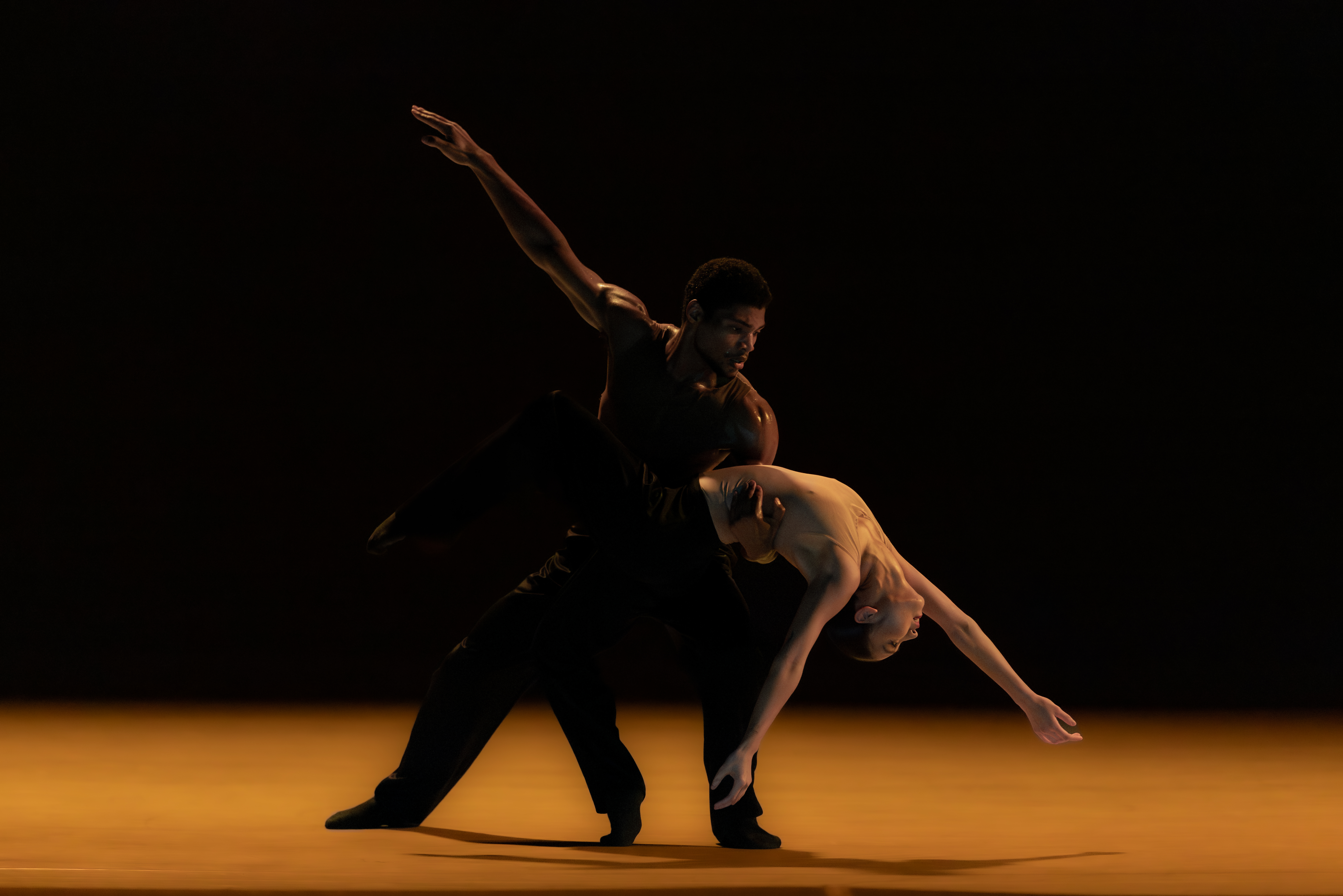 The atmosphere created onstage felt ethereal yet grounded. The vast stage was illuminated dimly with a warm, otherworldly glowing hues, complemented by Adrien Cronet’s richly layered, electro-acoustic score. Highlights included moments of exquisite partnering: long, elongated limbs reaching out, bodies fusing and repelling, echoing the push-and-pull of emotional longing. Walerski’s movement language feels understated yet deeply expressive, selecting nuance over spectacle, and communicating deeply felt emotions. At its heart, SWAY is less about narrative and more about presence. This performance at The Soraya captured that poignancy and elegance, leaving us marveling at beauty underpinned with drama.