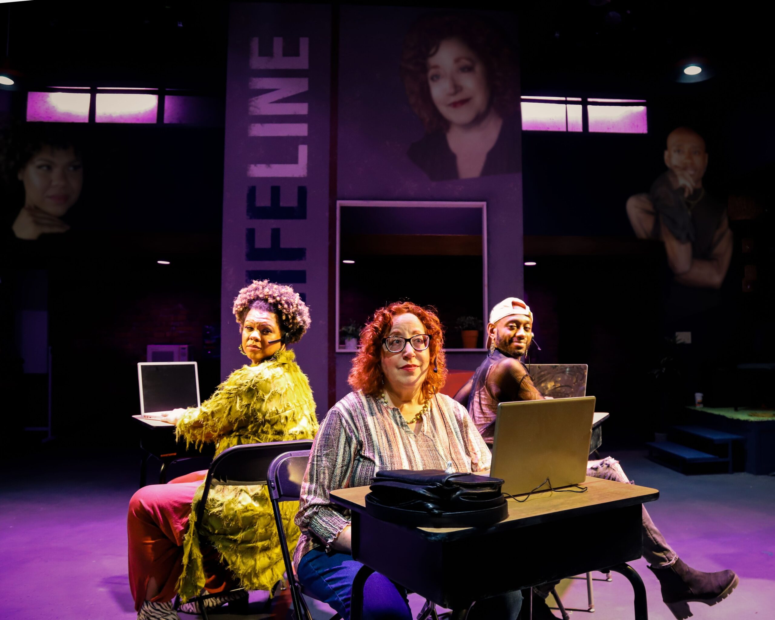 Drew (Tommy Dickie) and Jen (Brittany Visser) are teaching prospective suicide hotline counselors in an LGBTQIA+ center a monthlong preparation course for the job. Their students include Maya (Xoë Sazzle) and Kai (Clifton J. Adams), two black people who feel that they are a “minority within a minority,” the aggressively woke Sarah Beth (Naomi Rubin) and older straight woman Patti (Amy Tolsky). As the weeks go on, the group learns how to do the work but mainly learns how to work successfully with each other.