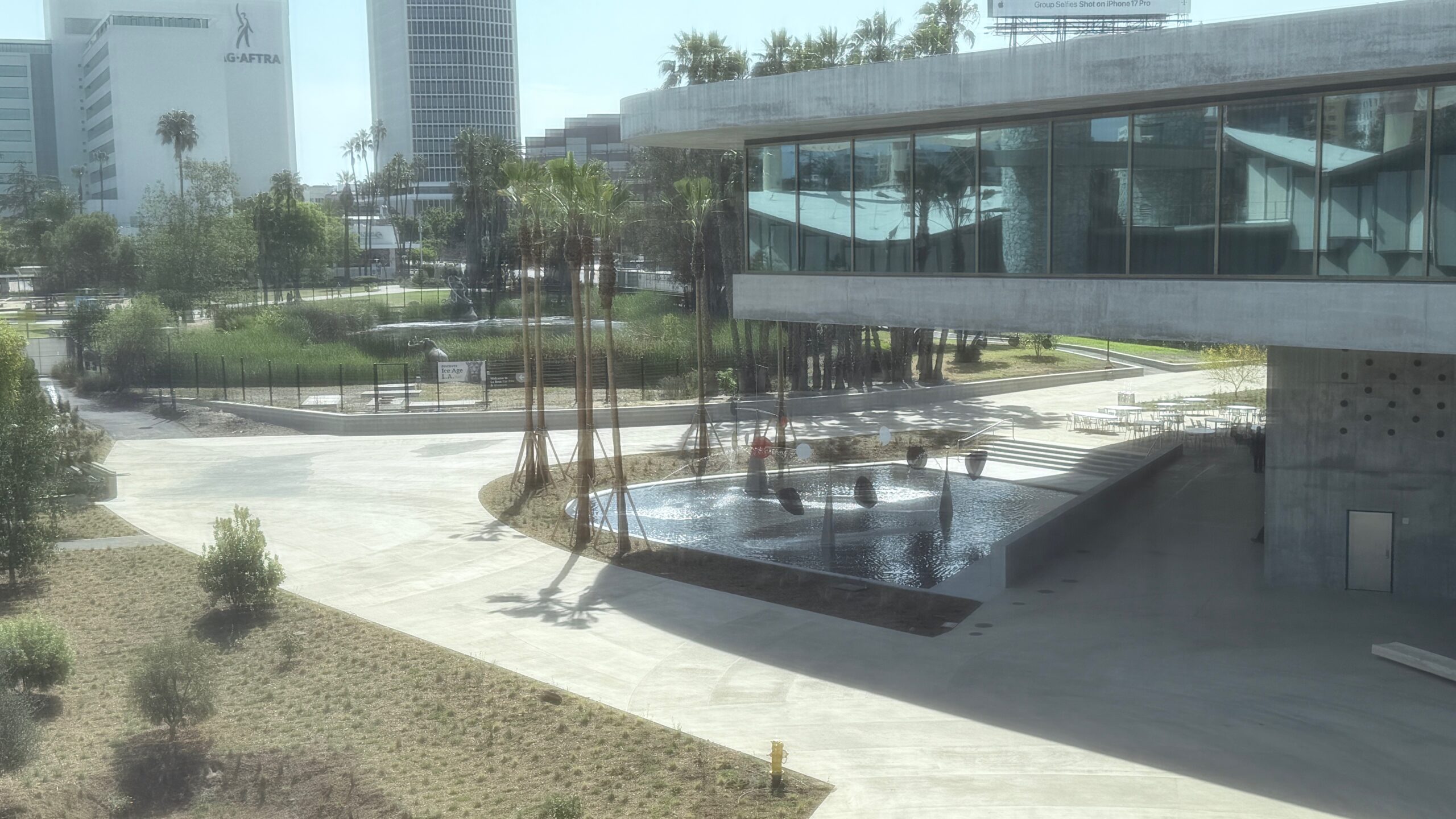 Those views include 3.5 acres of surrounding park space with newly commissioned public artworks, including Jeff Koons’ large-scale topiary sculpture Split-Rocker. Visitors can also see nearby landmarks such as the La Brea Tar Pits and Chris Burden’s Urban Light.